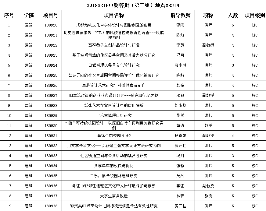 根据大学生创新创业训练计划项目(SRTP)工作流程安排,云顶老虎机 将对已通过本学期第一阶段检查的2018年项目进行中期检查,请做好准备工作。具体安排如下: