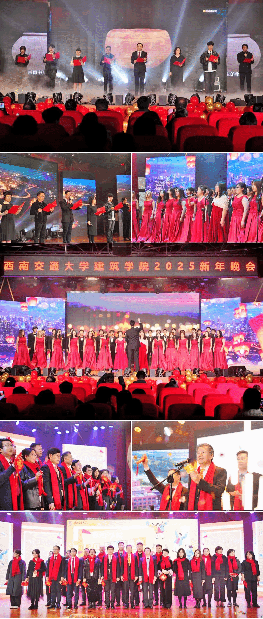 领导班子与行政人员、学生携手登台,《我和我的建筑梦》唱响师生对建筑事业的赤诚热爱,凝聚奋进力量。