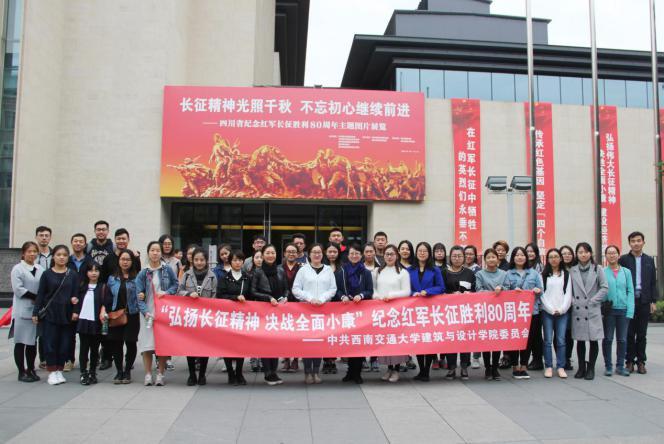 党委副书记刘一杰带领全体学生工作组辅导员、学生党员干部及2016年第2期16班党员发展对象赴四川省图书馆参观“四川省纪念红军长征胜利80周年主题图片展”进行爱国主义参观教育实践活动。
