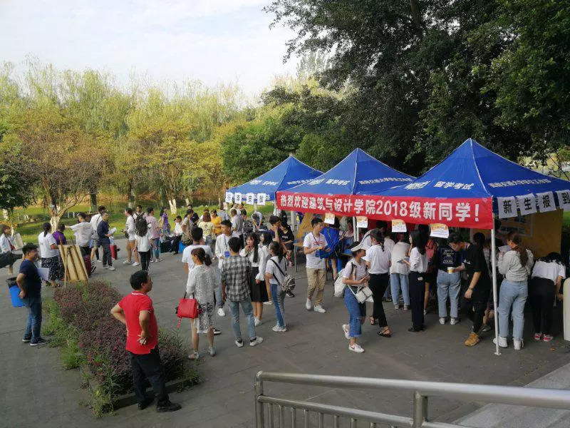 首次将美术类新生报到处设于建筑与设计馆(8号教学楼)长阶前。