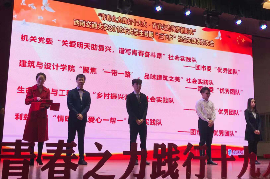 师生利用暑期“三下乡”社会实践的平台,走出校门、走进社会、走向基层,积极践行社会主义核心价值观、积极参与社会实践得到了学校团委的肯定。希望更多的交大学子,能够主动投身实践,磨练意志、增长才干,以青春建功的实际行动,为决胜全面建成小康社会、夺取新时代中国特色社会主义伟大胜利、实现中华民族伟大复兴的中国梦贡献青春力量!