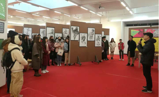 2018级设计艺术六班、七班的“动物凶猛”之《设计素描》与《构成基础》教学实验展开幕式在西南交大美术馆举行。