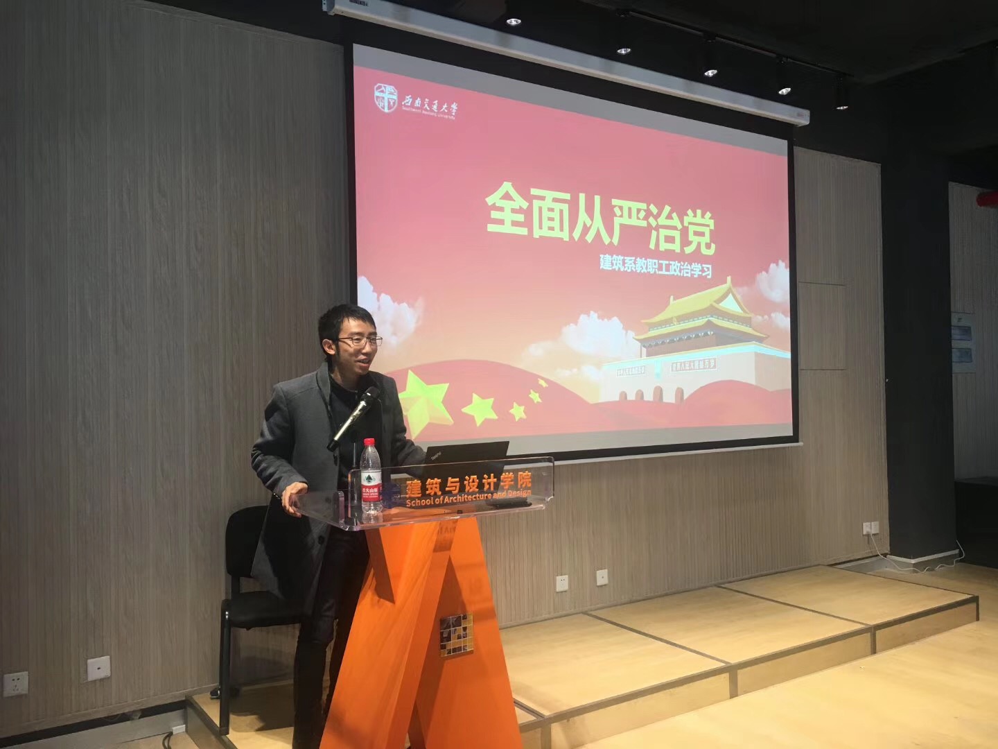 100报告厅进行政治理论学习,本次学习主题为:“全面从严治党”和“习近平总书记在学校思想政治理论课教师座谈会上的重要讲话”。学习活动由系党支部书记付飞老师主持,支部组织委员万江老师协调了学习的组织工作。党支部宣传委员熊瑛老师用PPT带领全体老师一道共同学习了“全面从严治党”和“习近平总书记在学校思想政治理论课教师座谈会上的重要讲话”两个内容。