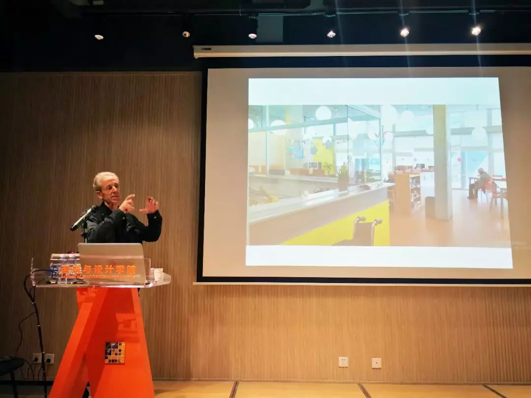 Luis RravoFarre教授首先介绍了巴塞罗那城市公共空间的演进历程和历史性公共建筑更新的代表性案例。从规划和保护更新设计的不同层面,结合其工作室的设计研究案例,对巴塞罗那公共空间与建筑的发展进行了解读。其后,Luis RravoFarre教授重点从建筑师的视角,介绍了欧洲当代老年住房的设计经验,以及对中国老年住房市场的思考。学术报告后,Luis RravoFarre教授与在场师生进行了深入的对话交流。