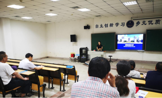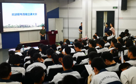 党委副书记刘一杰向宣讲会上的家长介绍了我校基本情况,欢迎对我校感兴趣的家长带孩子高考后来成都看看,也可以来交大校园参观,欢迎报考西南交通大学。随后,宣讲团成员付飞副教授简单介绍了我校建筑类相关专业情况,宣讲团成员高晗雨、王雪、孔翔榆分别介绍了其他专业和招生录取情况。