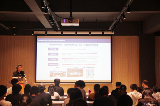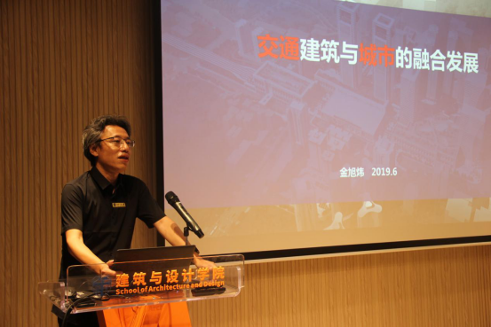 师生的热情参与表示了感谢和荣幸。他表示自九二年毕业以来的27年,是中国发展最快的27年,因此有幸见识到了很多“交通”与“城市”的进步和发展。他首先提到了交通基础建设与城市化之间相辅相成、相互影响的关系,认为城市化是当前经济发展的重要趋势,将取代工业化成为中国发展的主要动力,而交通基础设施建设便是城市化进程中的重要动力,甚至决定城市化发展的模式和方向。金教授又重点提到了“交通建筑”这一命题。他认为,“交通建筑”是在“建筑”属性上,又增加了其交通属性和公共属性,没有任何一个公共建筑的使用频率和规模能够堪比“交通建筑”。而交通建筑与城市的融合则强调了“人”、“交通”、“城市”三者的共生互利。在梳理了铁路客站与城市融合的发展路径后,金教授强调,发展是一个循序渐进的过程,但趋势一定是以人性化服务为最高境界的高度一体化建设,这其中,需要源源不断的高素质人才进行推动。