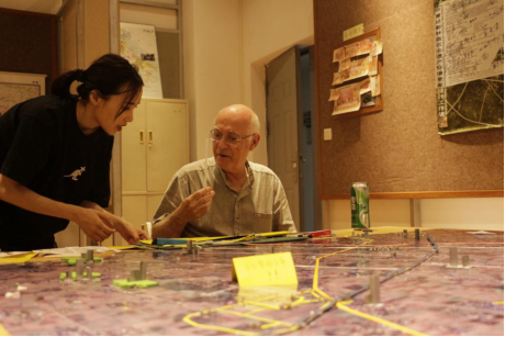 6月14日,Meriggi教授在地图上向同学们讲解他对基础设施布置的想法,分别要求两组的同学们查找基础设施建设的相关案例及模型,并对幼儿园和养老设施进行方案设计。两个小组经过组内短时间的讨论后分别向教授讲解了小组的基础服务设施建设的基本思路,教授提出了相关的意见。大家分工协作进行模型推敲,电脑绘制分析图和建构模型,查找相关案例资料和制作PPT进行成果汇报。