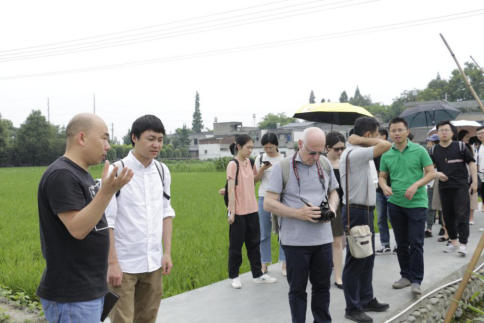 6月11日下午,讲座后前往什邡市洛水镇座谈及调研。在当地政府工作人员的陪同和引导下,大家深入考察了林盘当地产业、建筑风貌、建筑遗存等内容,建立了对场地周边环境初步意向感知。最后与什邡市洛水镇政府工作人员进行座谈并提出相应的意见。