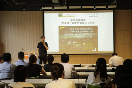党委书记沈中伟教授在开幕式致词,欢迎远道而来参加工作坊的高校师生,并预祝工作坊圆满成功。Meriggi教授为参加此次工作坊的师生讲座。韩林飞教授从乡村聚落的演变历程,现代农业的发展,乡建改造的内容,乡建中新建筑的思考,城市影响乡村五个层面展开进行了题为“乡建的形式与样式”的讲座。刘弘涛副教授介绍了四川林盘保护利用研究的背景,并简要介绍此次工作坊日程安排及调研选址场地的现状情况。