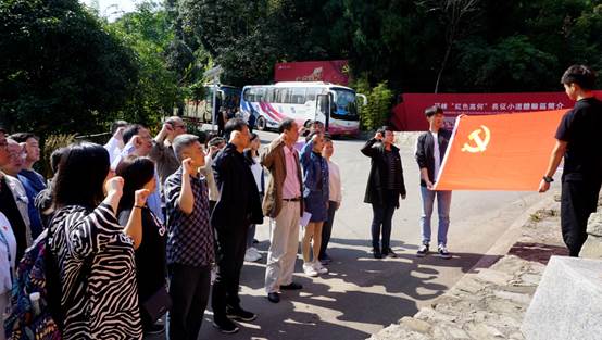 在红军小道路口,党委副书记刘一杰领誓,带领全体党员,面对党旗庄严宣誓,重温入党誓词,重忆入党初心。云顶老虎机