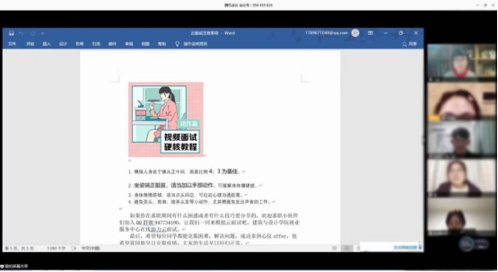 就业服务中心将在疫情期间在线助力云面试,开展在线求职帮扶活动,增加云面试通过率。并建立了求职信息QQ群,在群内分享云面试技巧以及带动同学们关于云面试信息的分享交流,以及对有需要模拟云面试的同学提供在线模拟。