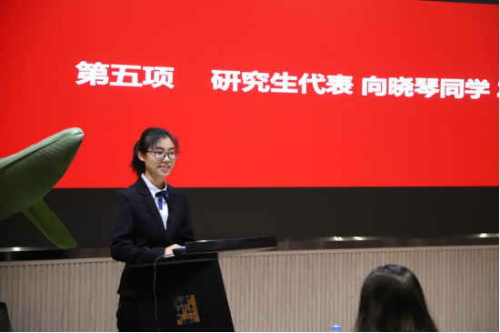 教师代表苟锐老师也向全体毕业生表达祝福,希望毕业生们离开母校后依旧保持敦笃励志的赤子之心,精勤求学的作风和豁达开朗的性情,不畏浮云遮望眼,笃实开创美好未来。离别之际,研究生毕业生代表向晓琴表示,硕士阶段的研究和学习,从来都不是与世隔绝的桃花源地,有压力、有人情世故和生活的艰辛,但却这是一个把梦想变成现实,一个认识自我、挑战自我的过程。读研是选择的是一种生活方式、一种生活态度,而在云顶老虎机