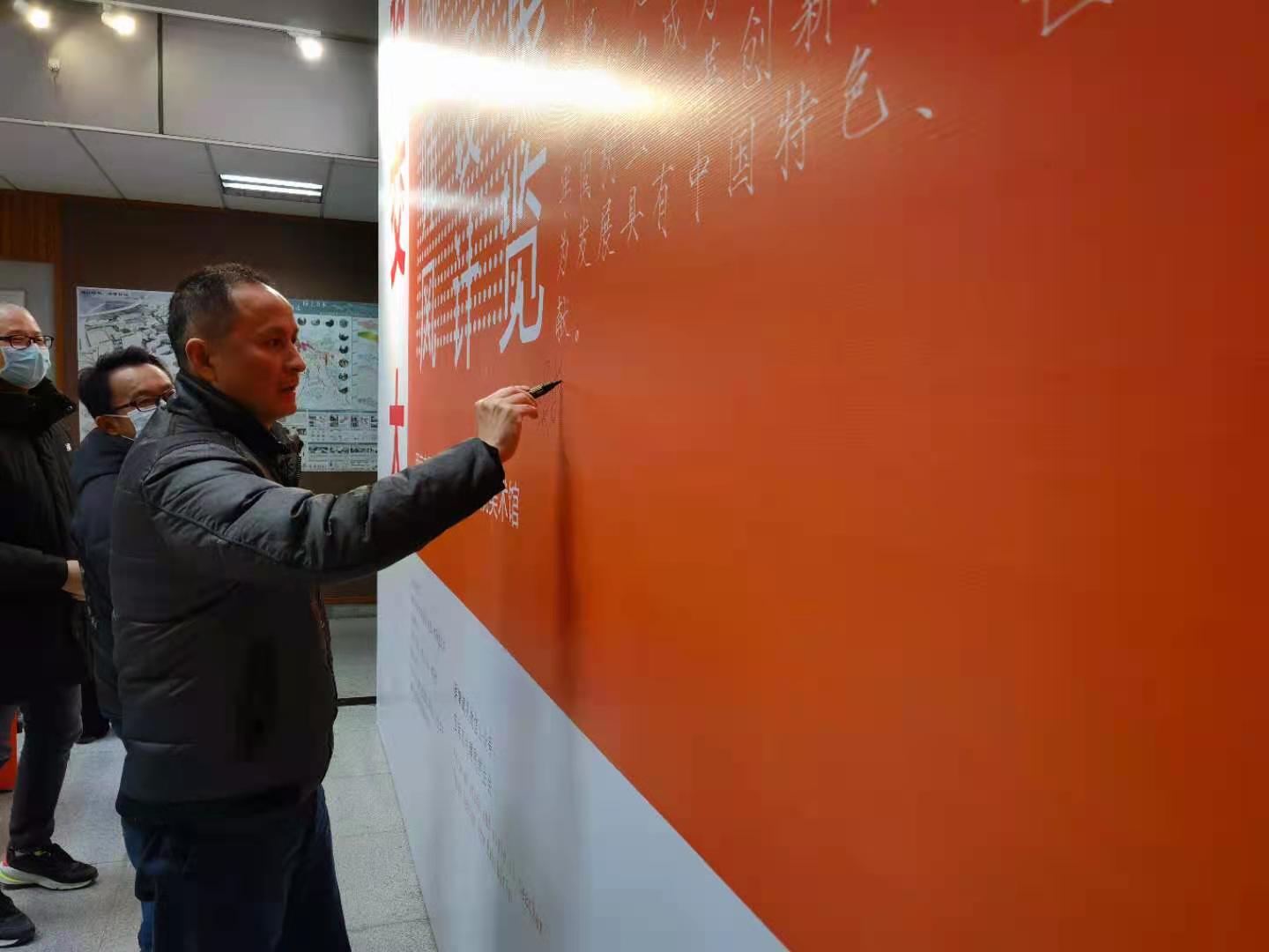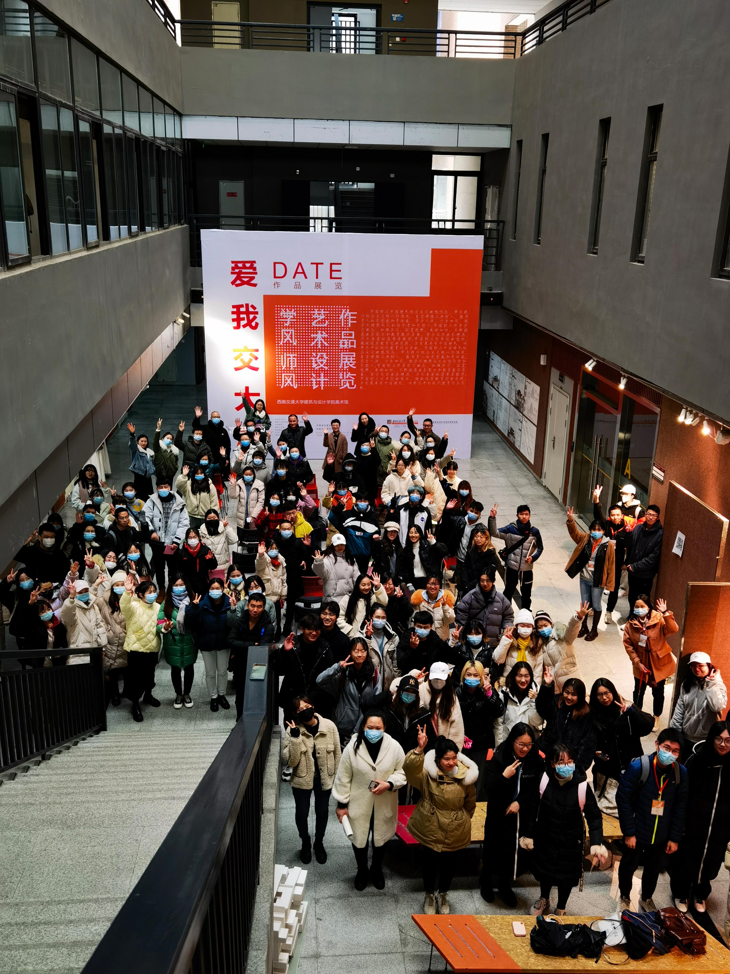 教师代表共同签署“师德承诺签名墙”,并进行合影留念。至此,“爱我交大”——学风师风主题艺术设计展开幕式暨颁奖仪式圆满落幕。活动结束后,现场的老师同学们有序参观展览作品。