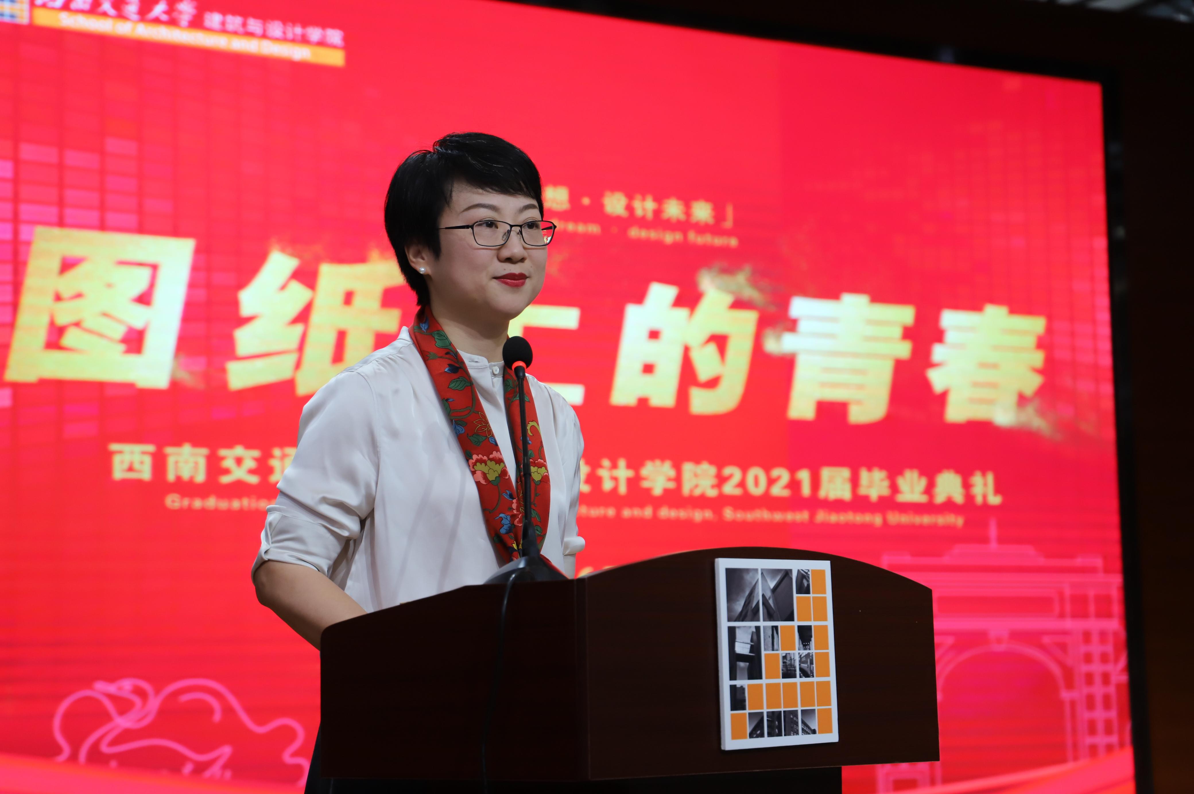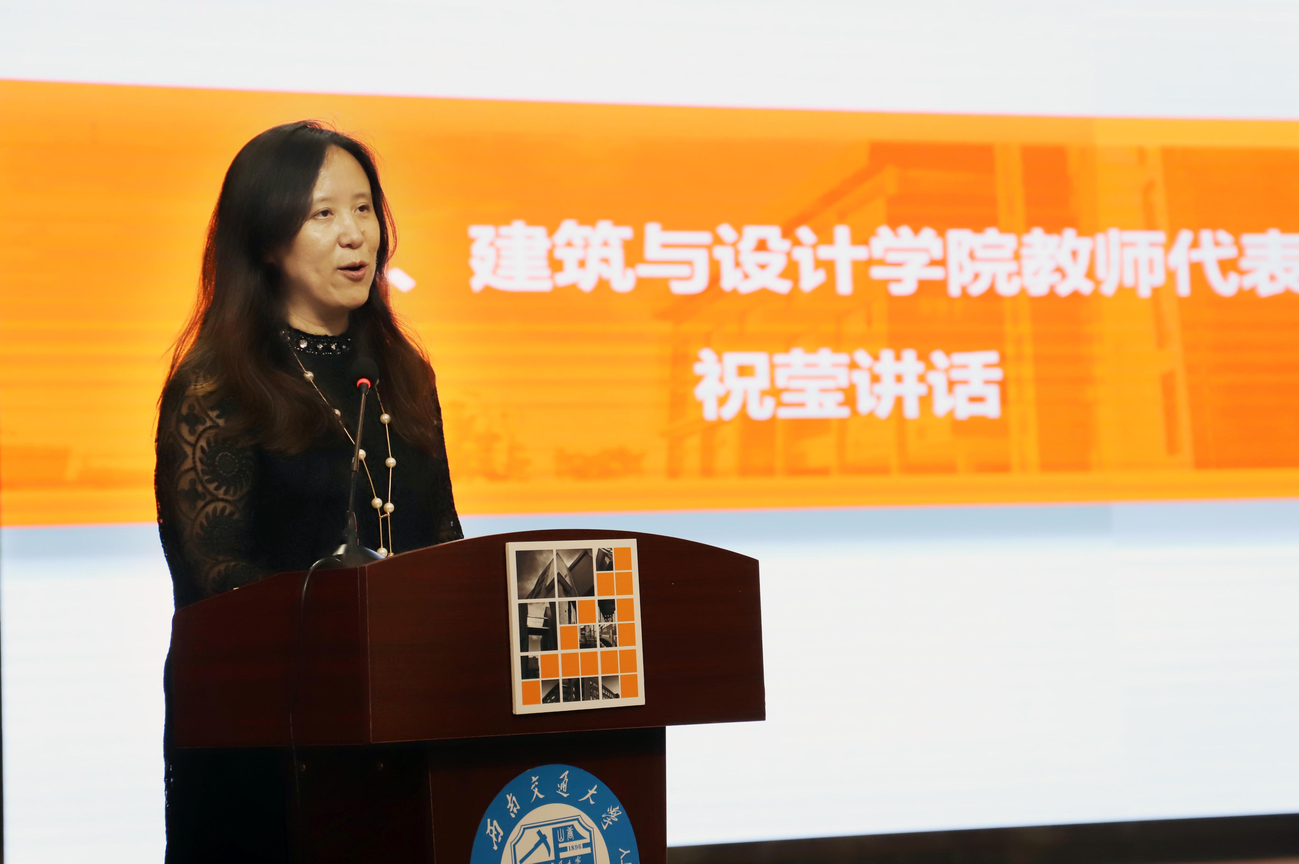 教师代表、2016级建筑学1班班导师祝莹副教授进行了发言,为毕业生送上祝福。她希望同学们确定自己的人生目标,坚信前路有光,未来熠熠生辉、捷报频传。