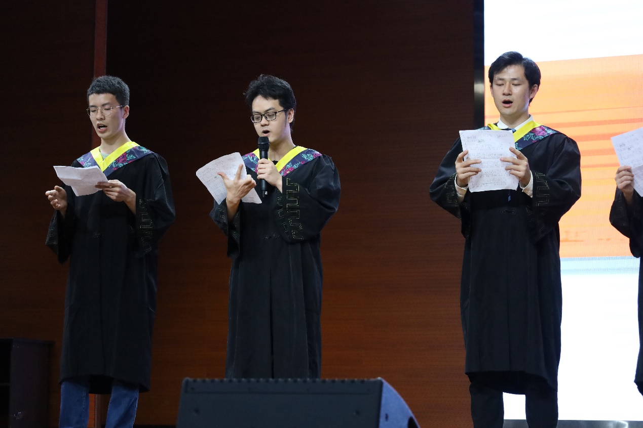 学位委员为毕业生拨穗、授予学位,并合影留念,将典礼的气氛推向高潮。