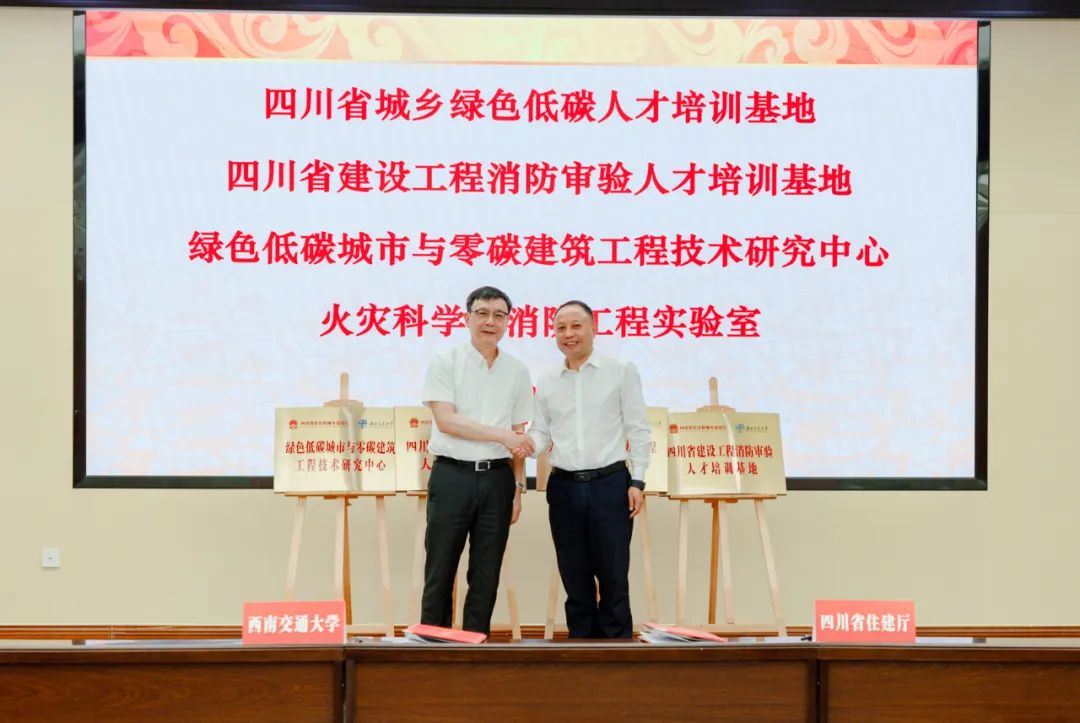 双方主要领导共同为“四川省建设工程消防审验人才培训基地、四川省城乡绿色低碳人才培训基地、绿色低碳城市与零碳建筑工程技术研究中心等”揭牌,双方还将共建“消防工程技术研究中心”和“铁路消防工程协同创新中心”。