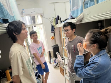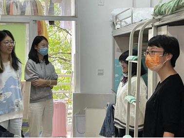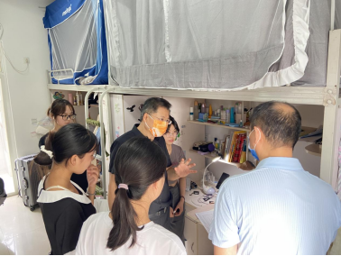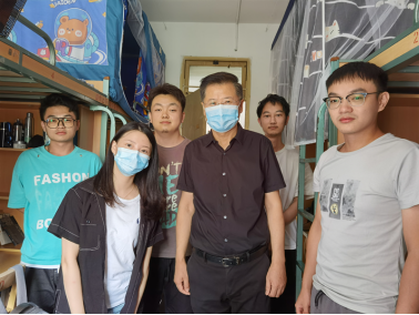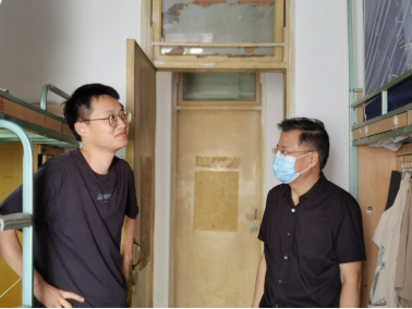 党委副书记刘一杰、学工组副组长孔翔榆分批带领辅导员多次走访学生宿舍,关心同学们的心理状态,了解同学们的各种困难以及诉求,提醒同学们在学校做好个人防疫措施,鼓励同学们正常进行学习生活,积极参加体育锻炼。