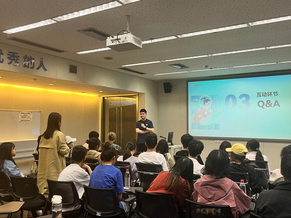 互动环节中同学们也积极参与,就工作选择、工作强度到身体健康问题等关心的问题与公司工作人员进行了交流。