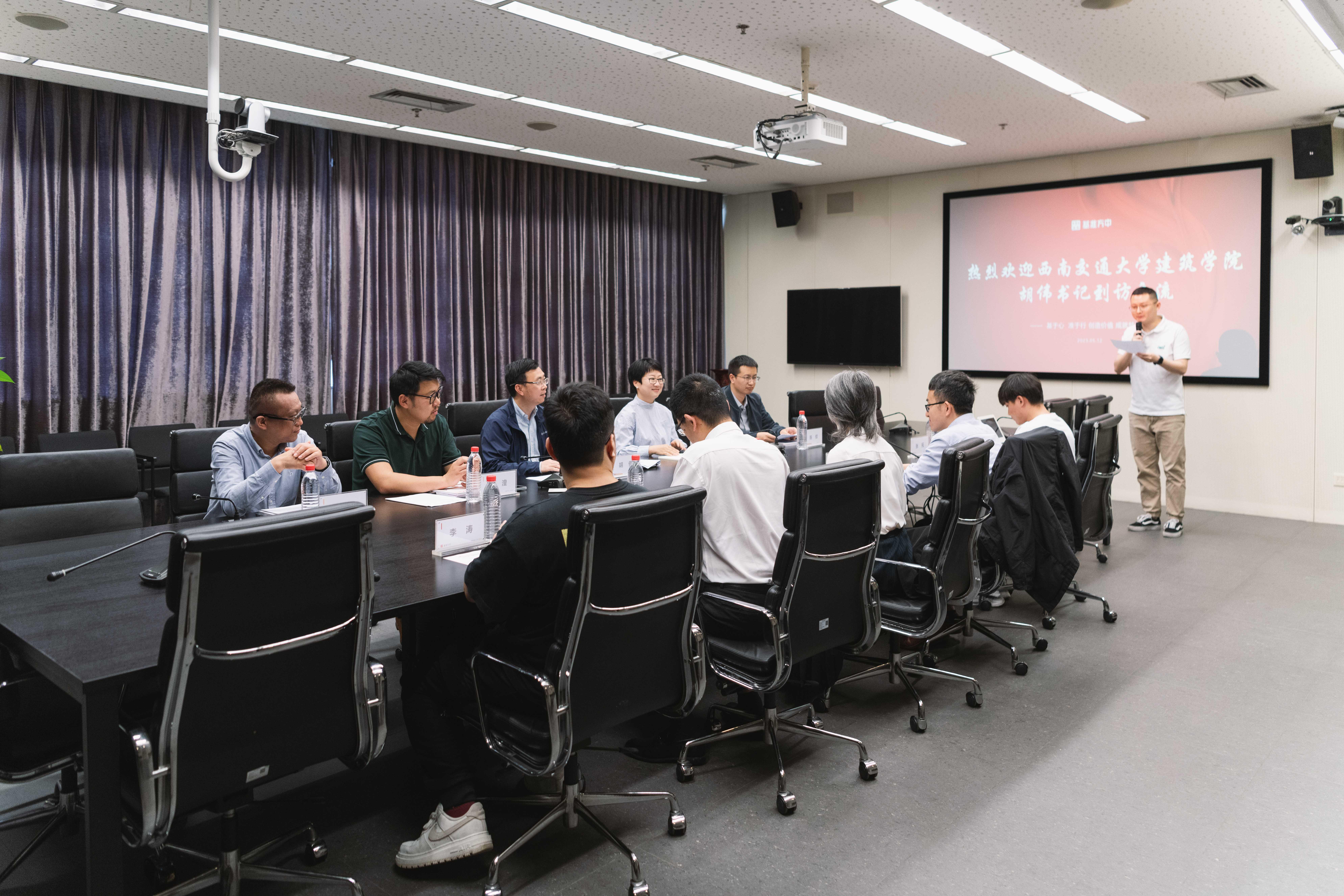 党委书记胡伟、党委副书记刘一杰带队前往成都基准方中建筑设计有限公司开展合作交流活动。参加此次访企拓岗的还有建筑系宣湟副主任、风景园林系周斯翔副主任、城乡规划系陈蛟主任助理、辅导员田方舟和赵思琦。