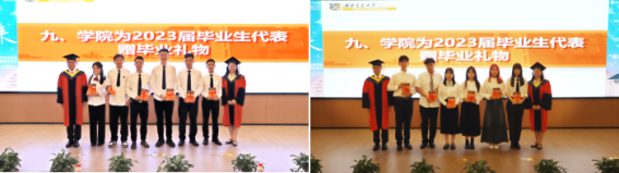 副院长崔叙教授及副院长杨青娟教授向毕业生代表赠送毕业纪念礼物。