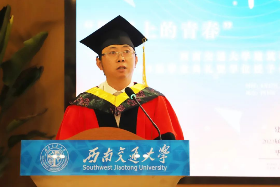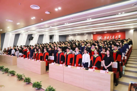 毕业典礼在齐声合唱的西南交通大学校歌《文轨车书郅大同》中画下句点,仪式圆满礼成。