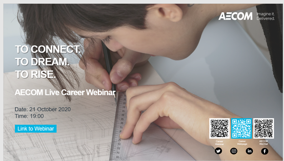 Aecom是美国著名财富500强上市公司,是全球基础设施全方位综合服务企业。我们多年深耕于规划、设计、工程到咨询和施工管理,为客户提供项目全生命周期各阶段的专业服务。我们将于2020年10月21日下午7:00 正式开始2021年的校园招聘,诚挚邀请同学们观看并投递简历。