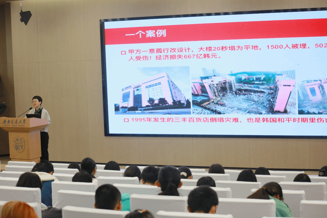 刘一杰老师以西南交通大学的学生管理和教学管理条例为新生提供了大学生坚守底线的依据,并以过往真实案例提醒新生们坚守底线遵守规则的重要性。