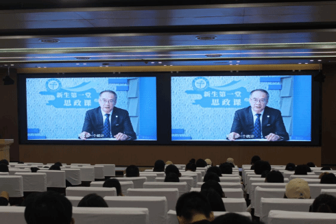 西南交通大学党委书记余敏明以视频的形式向2023级新生表示了衷心的祝贺与热烈的欢迎并为新生进行了大学的第一堂思政课。视频中,余书记讲述了学校办学史及办学以来校内优秀共产党员的杰出事迹。他指出:同学们应根植深厚的爱国情怀,践行“五老”开创的“双严”理念,努力向优秀前辈学习。同时,余书记以学校超高水平的轨道交通专业为例对学校未来发展做出展望。最后,余书记嘱咐同学们要将爱国之情落实到勤奋学习中去,把奋斗作为不懈追求并将创新作为前进的动力。