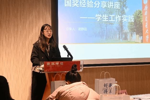 研究生会承办的“镜湖半月谈——国奖经验分享讲座”于2023年12月6日下午14:30,在西南交通大学犀浦校区第八教学楼 A100报告厅顺利举办。本次讲座邀请到了三位国奖获得者,分别是城乡规划的杨皓森同学、建筑的黄越同学以及城乡规划的诸静茹同学,为同学们分享他们的经验。