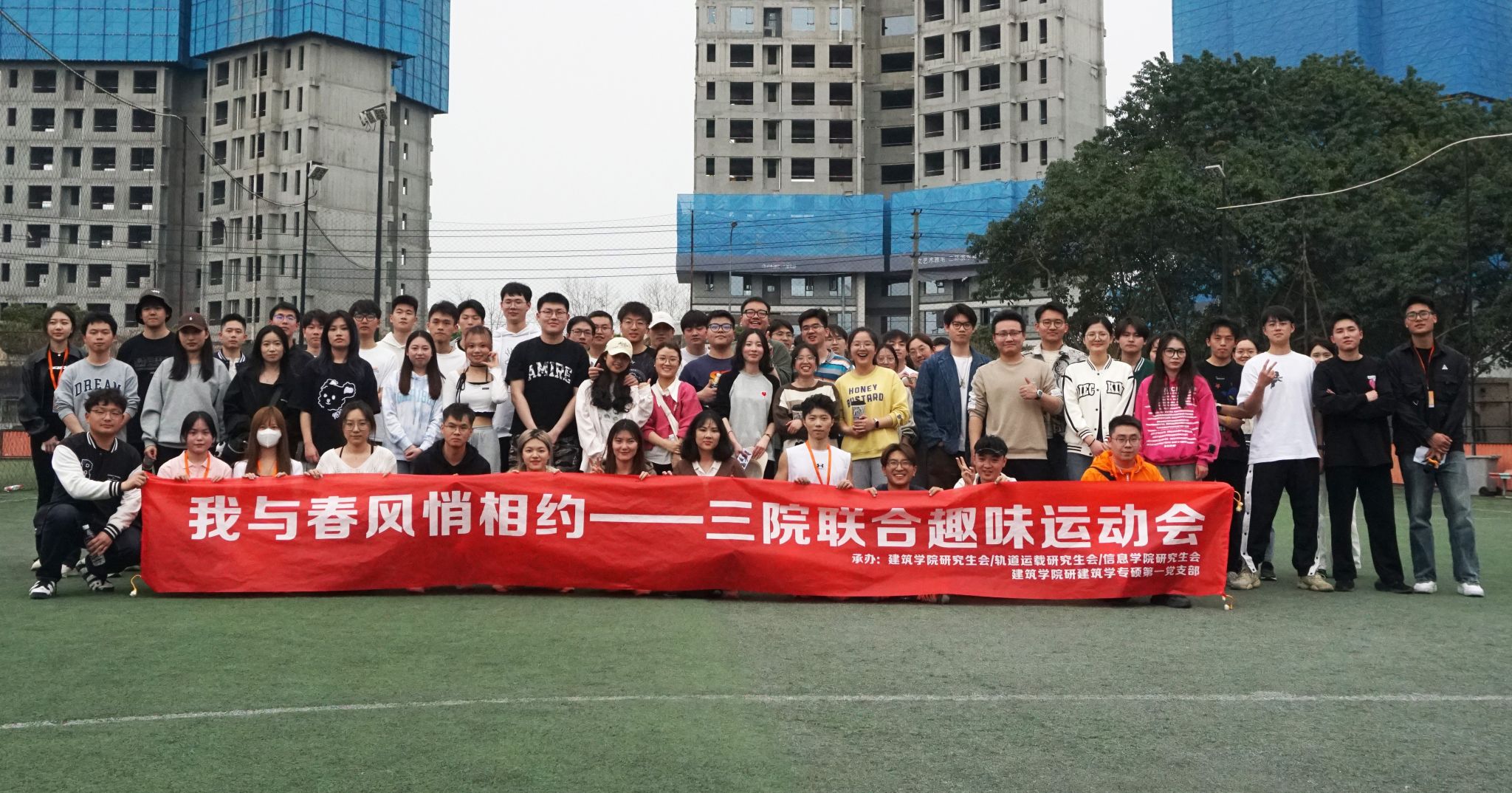 研究生会、研建筑学专硕第一党支部承办的“我与春风悄相约”三院联合趣味运动会于2024年3月23日下午,在西南交通大学九里校区运动场顺利开展。