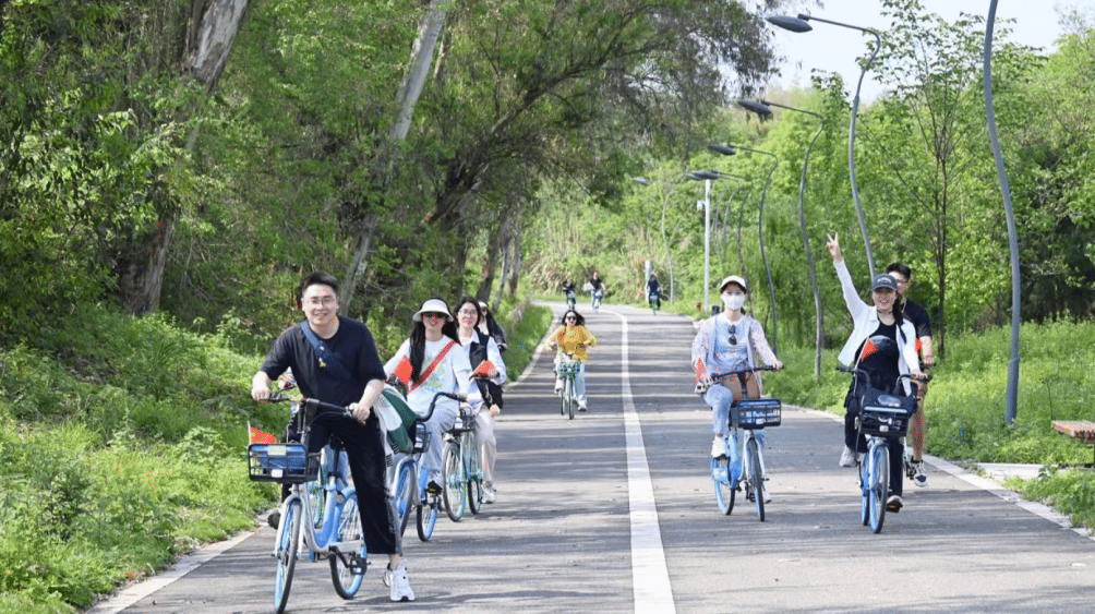 低碳骑行活动全程约20公里,始于青龙湖公园,经玉石、白鹭湾湿地两个打卡点,最终抵达中和湿地公园。同学们们骑行绿意间,尽享自然之美。
