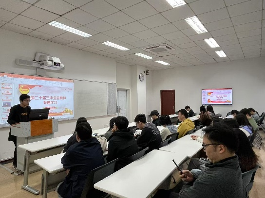 各班组织了党的二十届三中全会的专题学习。通过梳理会议要点和解读会议精神,同学们对党和国家在科技创新方面的战略部署有了更加深入的理解。大家纷纷表示,要紧跟国家发展步伐,将个人研究方向与国家需求紧密结合,为科技创新贡献力量。