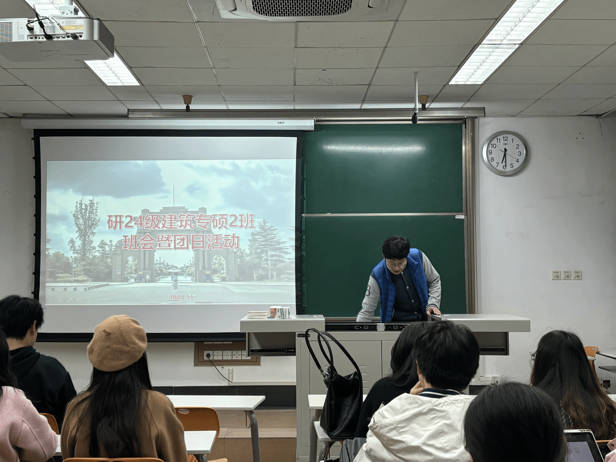 各班级也结合自身特色组织了丰富的活动。建筑专硕班邀请研究生“红路”理论学讲团开展主题宣讲,重点讲解党的二十大报告与党的二十届三中全会精神,深度探讨新时代青年的责任与担当。此外,班委依次分享科研工具使用经验及人工智能在建筑领域的前沿应用,这些实用内容极大拓宽了同学们的学术视野,并为未来科研方向提供了重要参考。