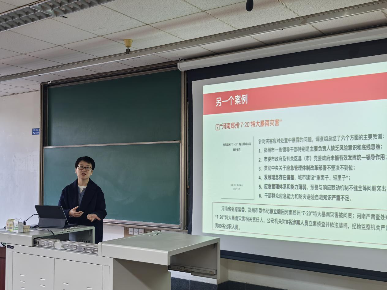 随后,刘一杰老师深入剖析了“河南郑州720特大暴雨灾害”等案例,深入浅出地讲解了如何在实际工作中运用底线思维,该案例引发了同学们对“底线思维”的讨论。在讲座的互动环节,学生们积极分享自己的看法,刘一杰老师做出补充。学生们纷纷表示,此次讲座让他们受益匪浅,不仅加深了对底线思维的理解,还学到了很多实用的自我管理技巧和方法。
