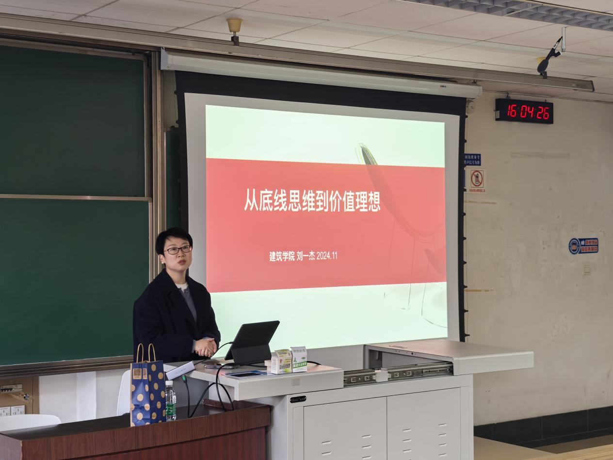 2024级研究生于九里校区4号教学楼J4224成功举办了一场主题为“从底线思维到价值理想”的专题讲座。本次讲座有幸邀请了建筑学院党委副书记刘一杰老师作为主讲嘉宾,旨在帮助广大学生树立正确的思维方式,提升自我管理水平,同时引导学生树立崇高的价值理想,为未来的成长和发展奠定坚实基础。参与本次讲座的还有研究生新生辅导员王振世老师以及2024级全体研究生。
