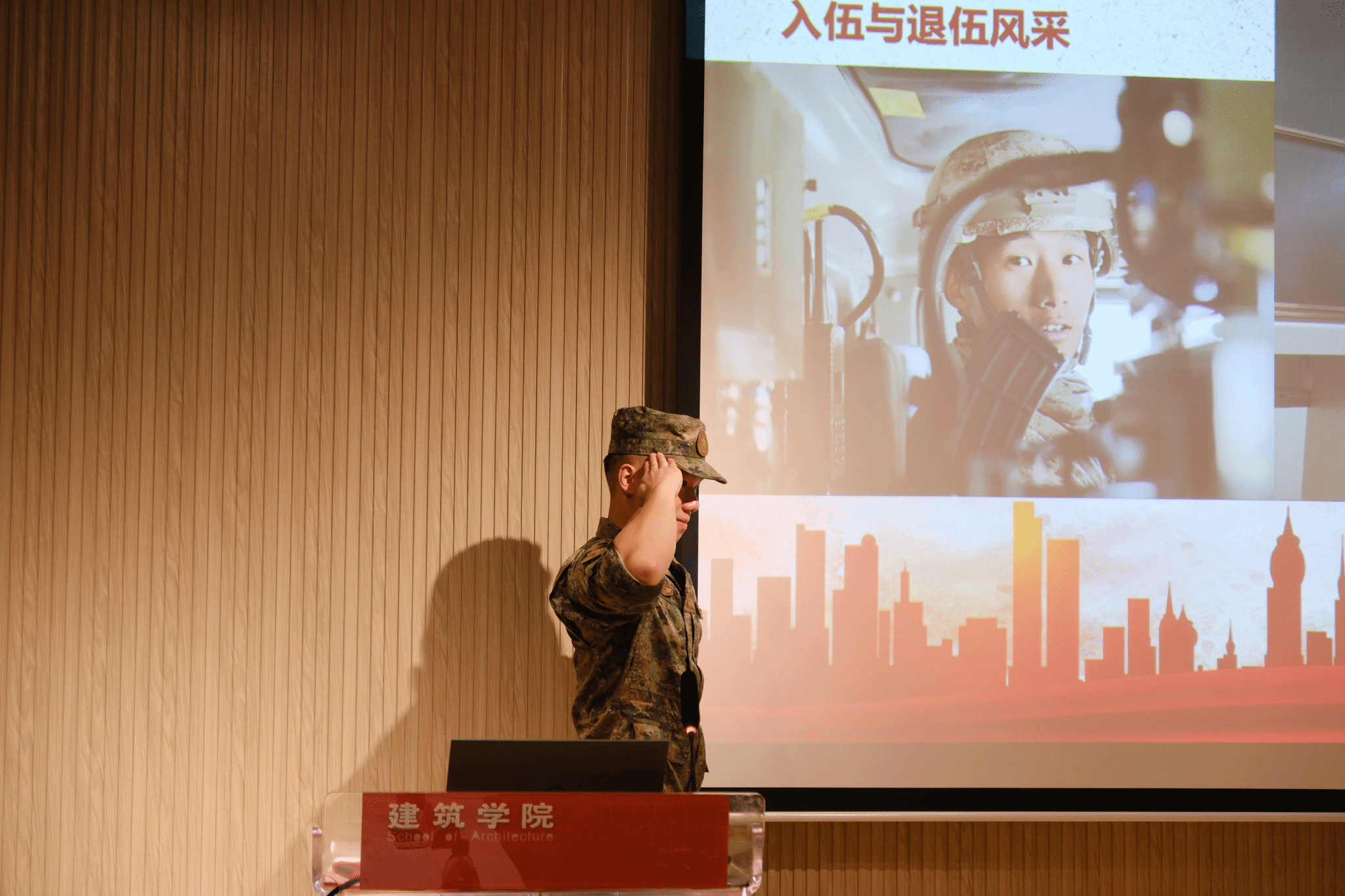 作为优秀退役大学生士兵,张一帆同学分享了自己在军队中的学习经验,更感慨通过在军队中的锻炼。精彩的分享让同学们对军营生活充满了期待,他还提醒大家要积极面对生活和学习,不断努力提高自己的专业能力和身体素质;俞冠霖同学从征兵入伍条件及要求、国防的意义及大学生当兵的优惠政策开始分享,他不仅学到了技能和知识,更重要的是增强了信心和毅力,培养起了坚强的意志,感受到军人职责的庄严和神圣。