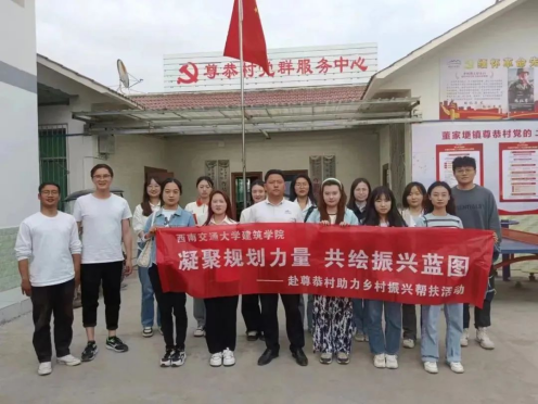 本研团支部与尊恭村展开了紧密的合作。青年团员们于2024年7月10日前往尊恭村开展乡村振兴调研活动,并为尊恭村设计了主题LOGO、乡村振兴明信片以及乡村公共空间布局方案。