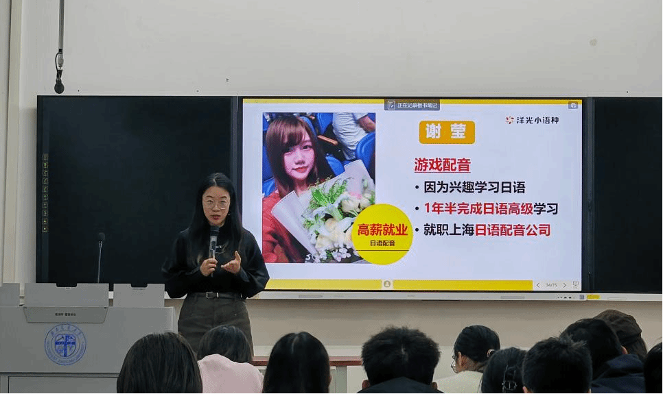 讲座吸引了120名学生参加,由优秀小语种讲师带领学生初步了解五大小语种的发音特点,并与学生互动。讲师还介绍了通过学习小语种取得学业或工作上成就的优秀学生案例,以及利用课余时间学习小语种切实可行的方法。讲座结束后,进行了集体合照留念。
