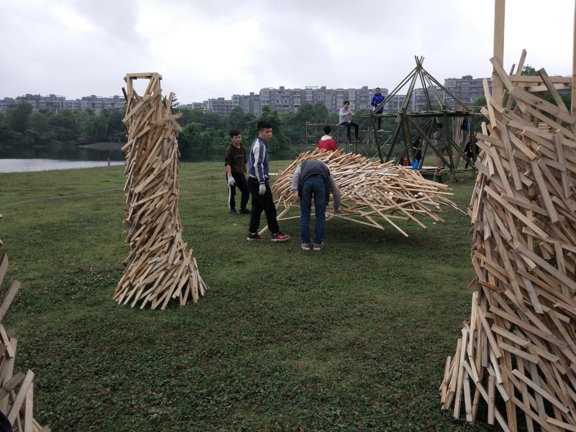 党员服务队依次察看了各小组工作进度,为需要帮助的同学们提供了一些技术指导。一些小组在建造过程中遇到组装困难、人手不够的问题,党员服务队进行了帮扶工作。