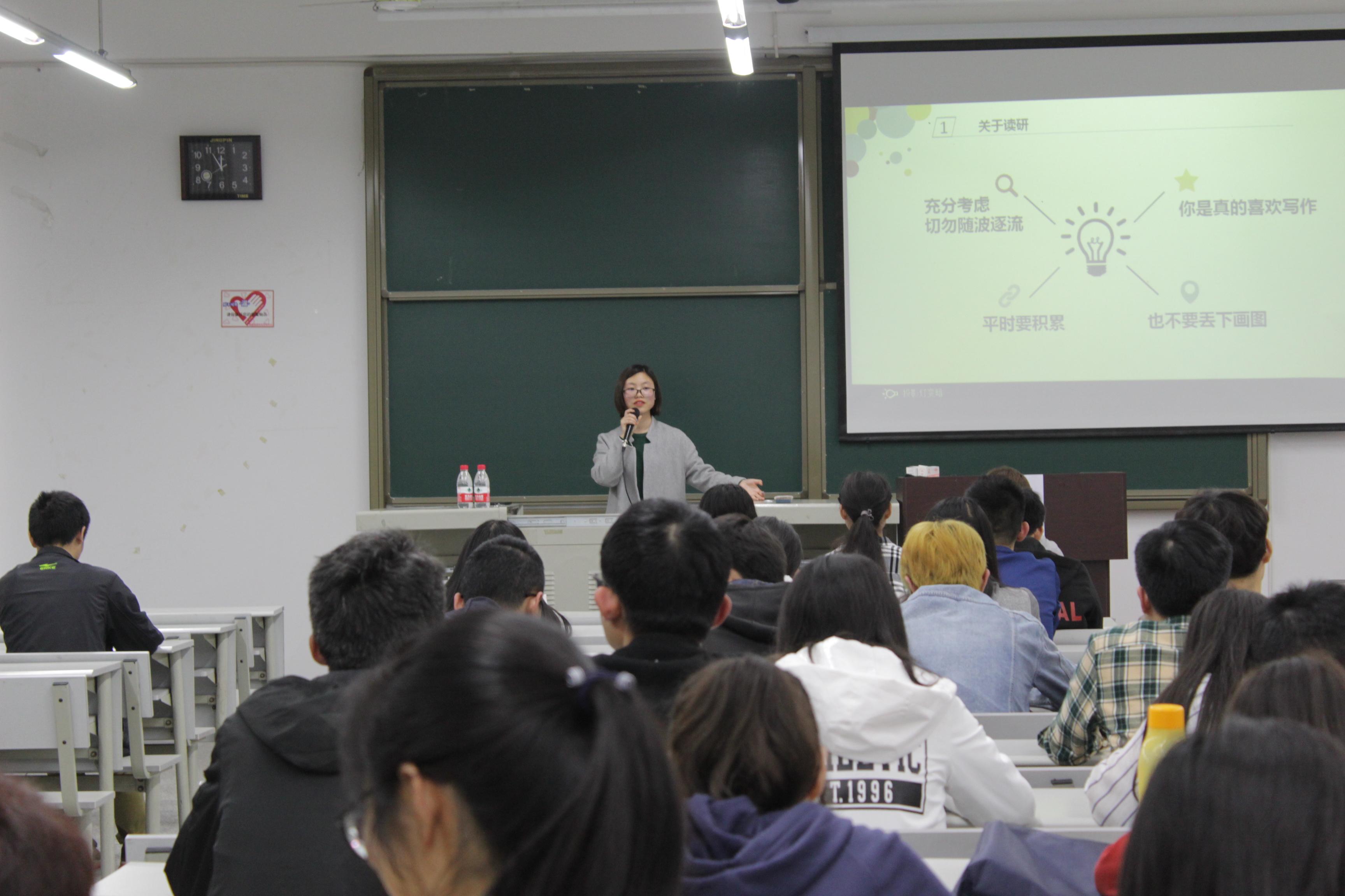 研究生会主席、2017级硕士向晓琴同学。她依次向同学们讲解了她五年大学的社团学习经历,并和同学们分享了一些关于她自己的大学规划,给同学们分享了考研方面的学习方法,同时与同学们讨论关于未来工作方面的话题,最后耐心解答了部分同学们提出的相关问题。至此本次讲座圆满结束。