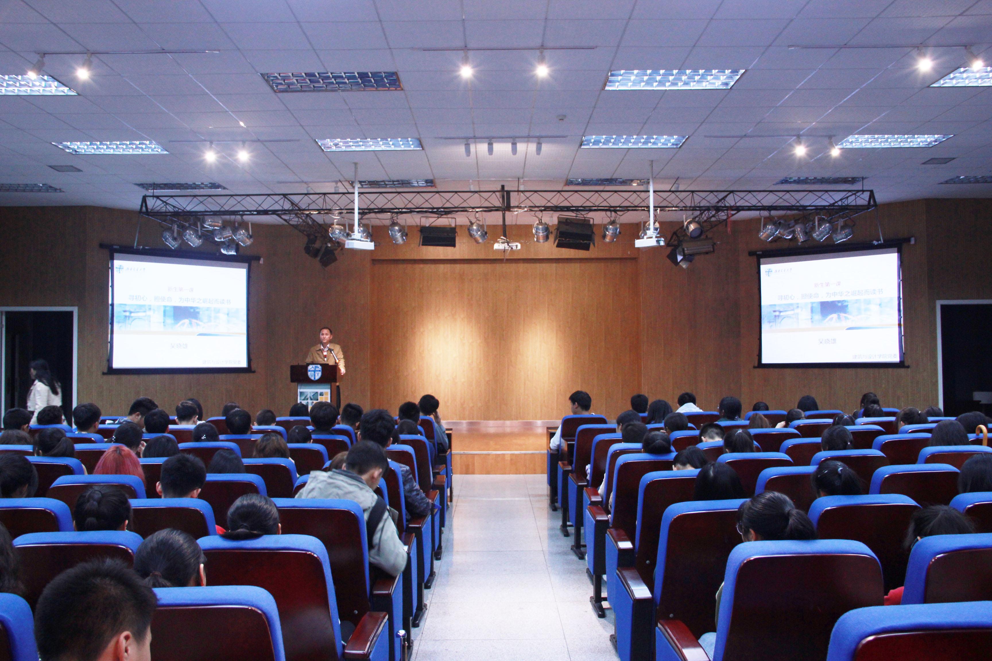在建筑与设计馆300报告厅开展了“不忘初心,牢记使命”主题教育,院党委书记吴晓雄给同学们带来了一堂主题为“寻初心,担使命,为中华之崛起而读书”的新生第一课。辅导员周冶、曾琳茹、袁毓璟老师和2019级全体新生们参加了这次教育。
