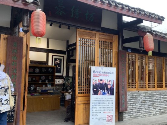 离开豆瓣厂,我们来到战旗村的“乡村十八坊”,这里像是战旗村的文化艺术中心,这里集中展示郫县豆瓣、蜀绣、竹编在内的18种传统非物质文化制作工艺,是一条古色古香的“宝藏街”。