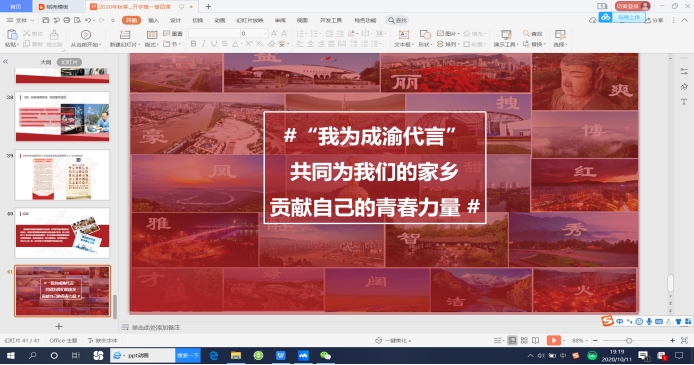 研2019级城乡规划团支部于利用腾讯会议线上平台开展了主题为“带你走近‘成渝地区双城经济圈’”的第一堂团课学习,团支部38名团员全部准时参加第一堂团课的学习。