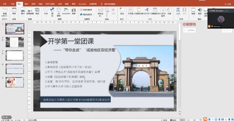 研2019级建筑学专硕2班团支部于2020年10月11日20点,依托腾讯会议,进行了线上秋季“开学第一堂团课”。此次活动由团支部书记主持,总计24人,共23人参会,开展时长约1小时10分钟。