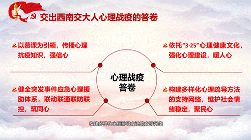 第三,辐射示范,心理战疫成效受到社会的广泛关注和认可。西南交通大学心理抗疫者们倾情付出,用“心”战疫,交出了西南交大人心理战疫的答卷。