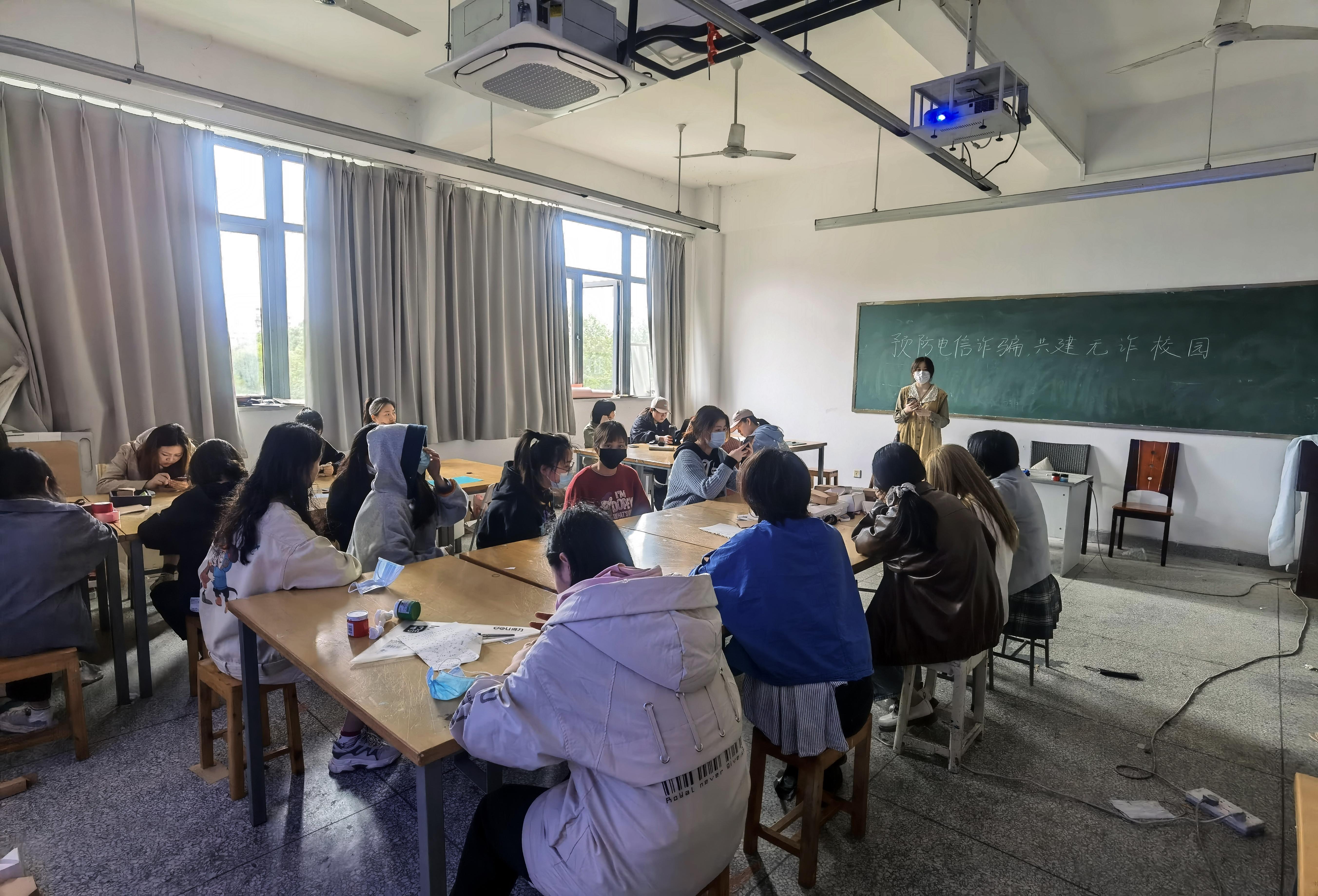其次班委列举了相关身边案例以增加同学们对新型诈骗的认识,提高防范警惕性,理性应对诈骗事件,切实维护自身合法利益不受侵犯。