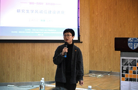 讲座中,熊瑛老师以“要做好设计,首先要做好人”作为开场语,通过展示一系列书法作品阐述了“宁可无得,不可无德”的诚信思想。随后,熊瑛老师结合建筑学科特点,对中共中央办公厅、国务院办公厅印发的一系列相关政策进行了解读,通过列举案例详细阐述了学术不端的类型、论文撰写规范、学风诚信环境建设等方面的内容。讲座最后,熊瑛老师对同学们的问题进行了现场解答。