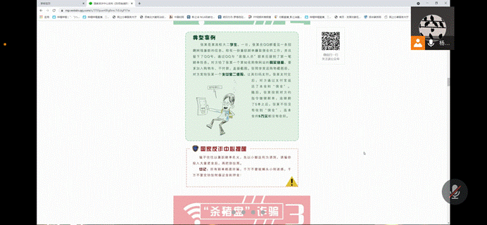 2019级硕士设计学班和2019级硕士工业设计班两个班级召开了“防诈骗”线上宣传教育主题班会。