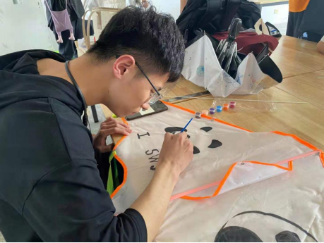 活动的第一个流程是【风筝绘制】“纸鸢扶风醉春烟,芳菲入笔绘满天”。同学们以“交大之春”为主题,放飞想象力,在空白的风筝上画出内容不同形式各异的图案内容,表达对青春的理解对交大的爱。绘制过程中三到四人分组合作,加强了组内交流合作,同学们对内容各抒己见畅所欲言,绘画时互帮互助,彼此交到了新朋友,获得愉快的绘画体验。