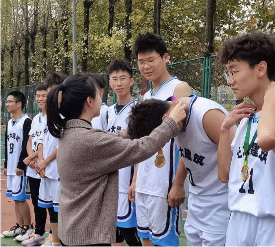 辅导员高晗雨老师,钱秋凡老师,李国仪老师出席了此次闭幕式。男篮,女篮冠亚季军的队员轮流上前领奖并合影。